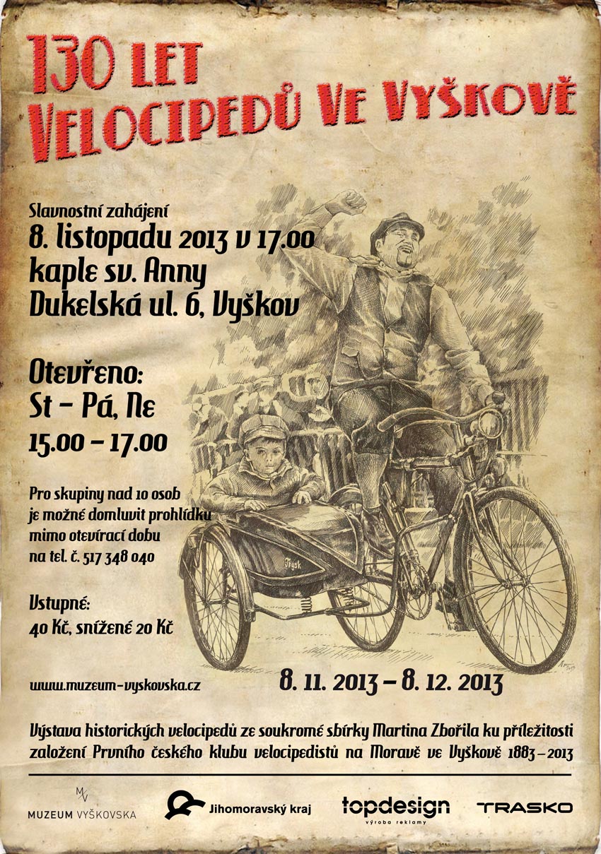 Výstava historických velocipedů ze soukromé sbírky Martina Zbořila se koná k příležitosti založení Prvního českého klubu velocipedistů na Moravě ve Vyškově, který byl založen 2. 11. 1883.