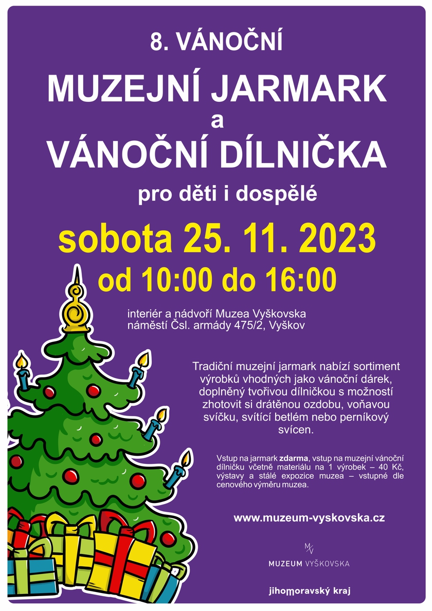 sobota 25. listopadu 2023 od 10:00 do 16:00 interiér a nádvoří Muzea Vyškovska