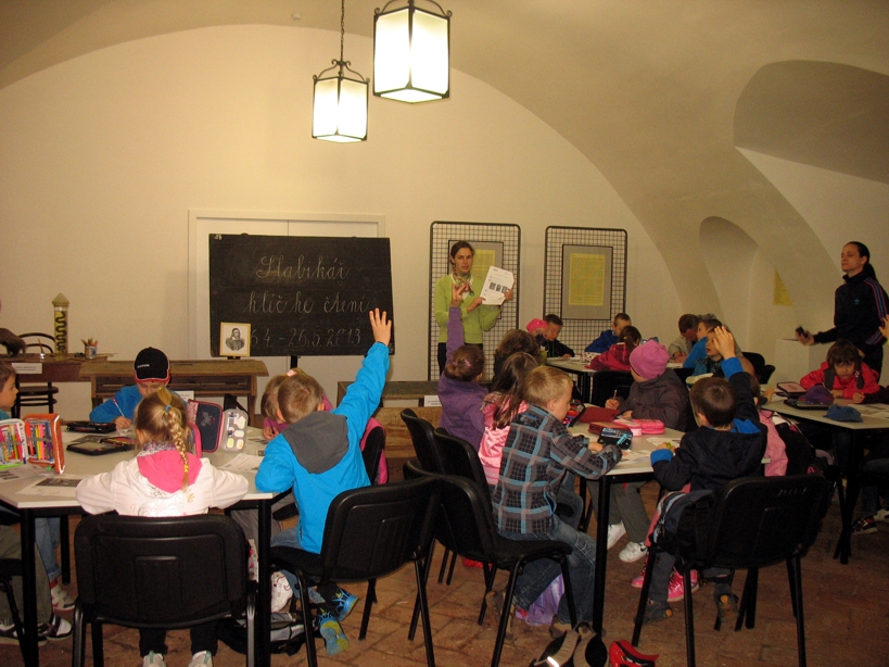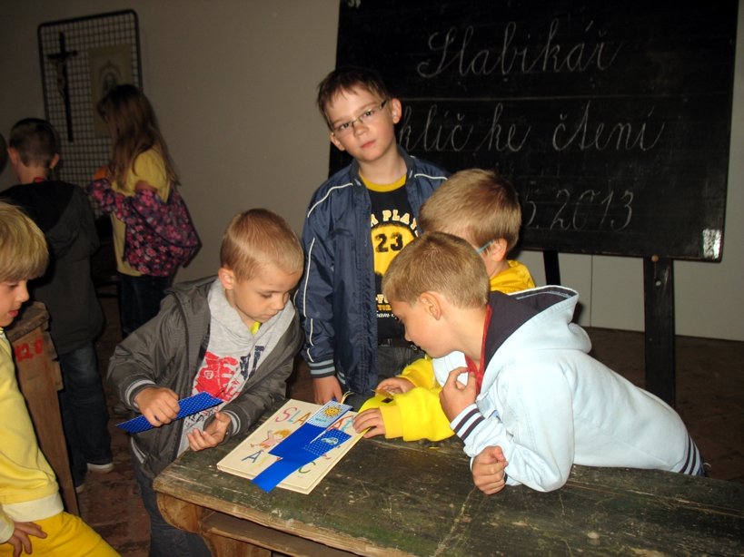 Animační program Škola našich prababiček k právě probíhající výstavě Slabikář – klíč ke čtení: