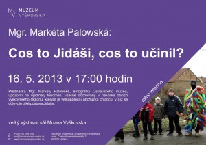 Mgr. Markéta Palowská, v letech 1993 – 2001 etnografka Muzea Vyškovska, dnes působící v Ostravském muzeu, ve své přednášce přiblíží fenomén velkopátečních obřadních obchůzek s Jidášem, který se v regionu širšího Vyškovska, zejména pak v okolí Bučovic, vyskytuje do dnešních dnů. Jidáš, na Bučovicku častěji Idáš, je pro aktéry zosobněním novozákonního Jidáše, ve své dávné podstatě však představuje antropomorfní ztělesnění zla, zlého ducha, zlé síly, která nám může škodit, a proto je třeba před ní utéct nebo ji jakýmkoli způsobem přemoci či potrestat.