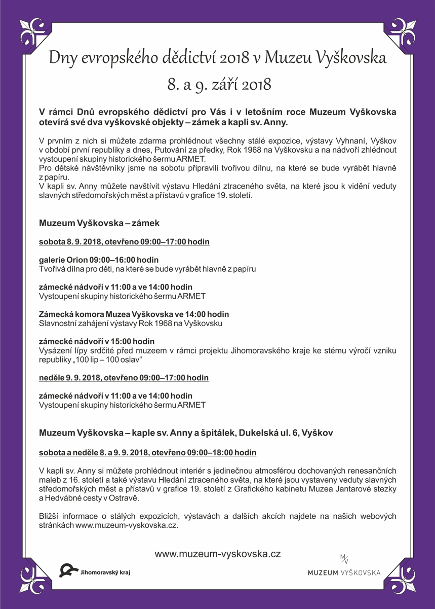8. a 9. září 2018 Muzeum Vyškovska a kaple sv. Anny