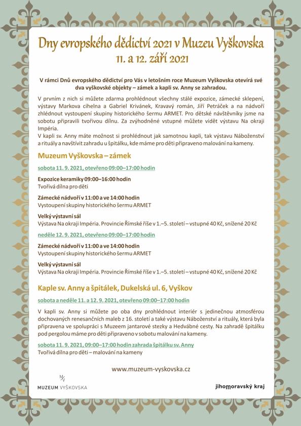 sobota a neděle 11. – 12. září 2021 Muzeum Vyškovska a kaple sv. Anny se zahradou