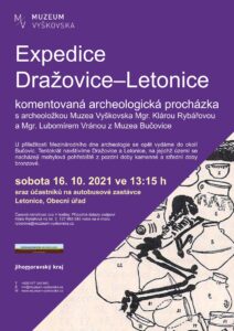 U příležitosti Mezinárodního dne archeologie se opět vydáme do okolí Bučovic. Tentokrát navštívíme Dražovice a Letonice, na jejichž území se nacházejí mohylová pohřebiště z pozdní doby kamenné a střední doby bronzové.