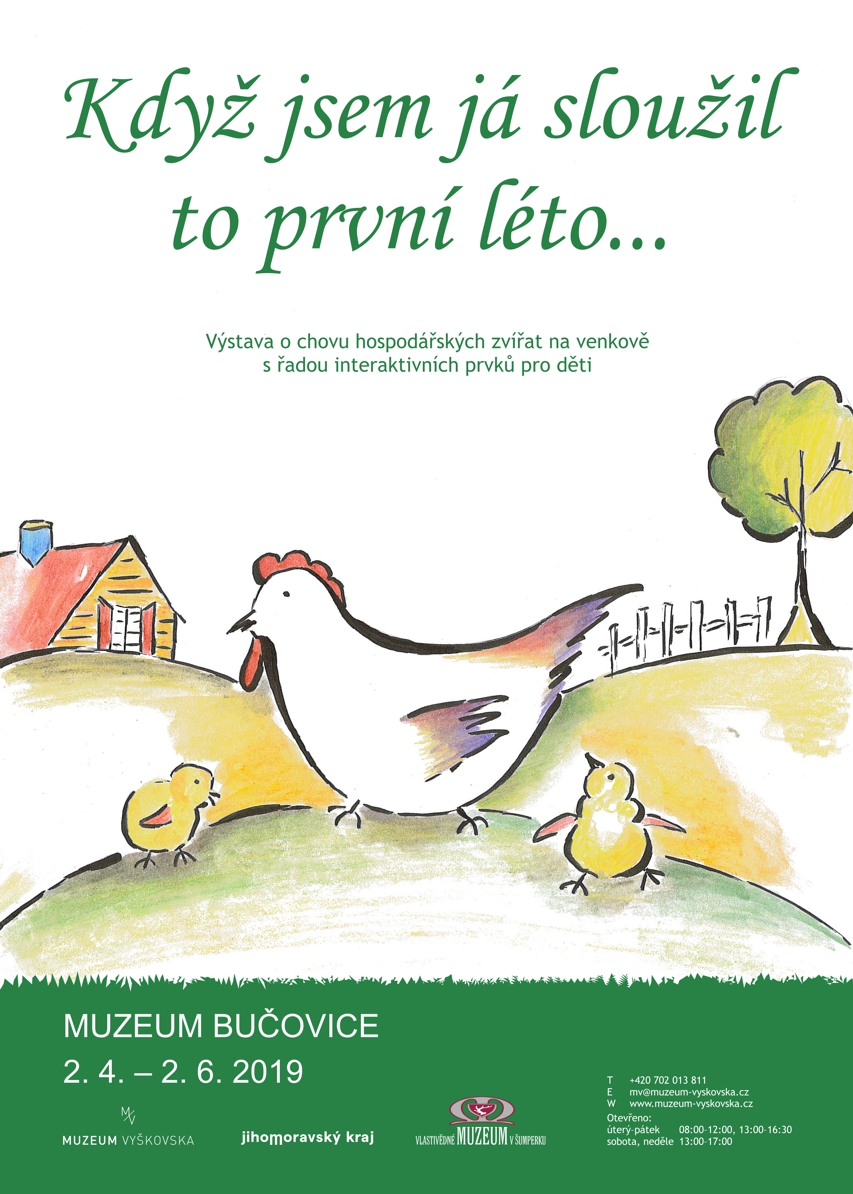 Zveme vás do Muzea Bučovice na interaktivní výstavu o hospodaření, které ještě do poloviny minulého století na vesnicích běžně fungovalo. Hospodáři obdělávali políčka, sklízeli úrodu a chovali na svých dvorcích domácí užitková zvířata, jež přispívala k denní obživě. Návštěvníci se seznámí s podobou, chovem a užitkem běžného domácího zvířectva, jako jsou slepice, husy, ovce, krávy, koně a další. Uvidí nářadí a mnohé pomůcky na zpracování zvířecích surovin, které lze dnes najít již jen odložené na starých půdách nebo zapomenuté na bývalých statcích. Hospodářská zvířata byla každodenní součástí života, a proto se objevovala v různých lidových ztvárněních jako výzdoba na předmětech v domácnosti. Děti si vyzkouší, jak se dojí kráva, učešou koňskou hřívu, budou poznávat stopy některých zvířat a užijí si další interaktivní hry. Výstava je připravena ve spolupráci s Vlastivědným muzeem v Šumperku.