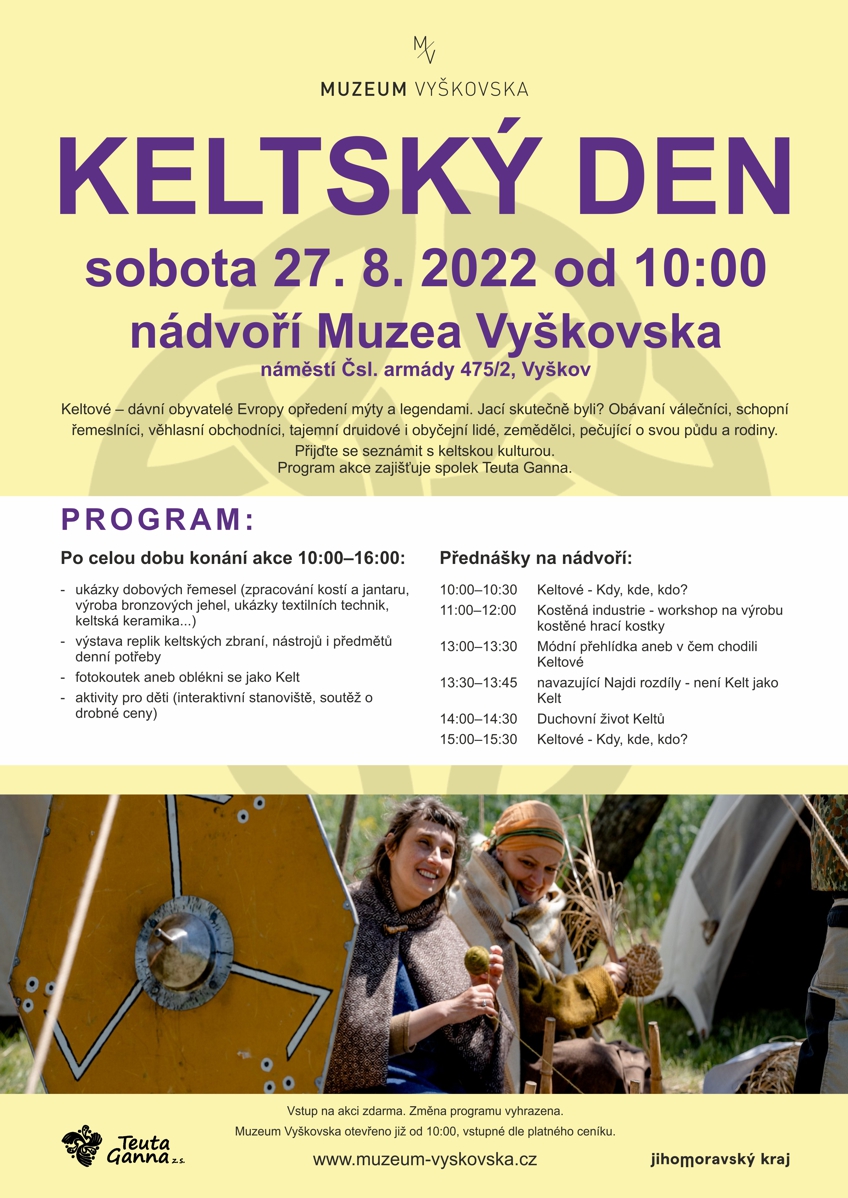 Keltové – dávní obyvatelé Evropy opředení mýty a legendami. Jací skutečně byli? Obávaní válečníci, schopní řemeslníci, věhlasní obchodníci, tajemní druidové i obyčejní lidé, zemědělci, pečující o svou půdu a rodiny. Přijďte se seznámit s keltskou kulturou.