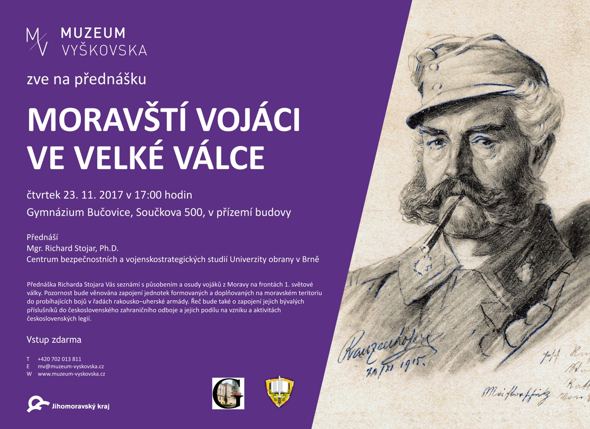 Přednáška Richarda Stojara vás seznámí s působením a osudy vojáků z Moravy na frontách 1. světové války. Pozornost bude věnována zapojení jednotek formovaných a doplňovaných na moravském teritoriu do probíhajících bojů v řadách rakousko-uherské armády. Řeč bude také o zapojení jejich bývalých příslušníků do československého zahraničního odboje a jejich podílu na vzniku a aktivitách československých legií.