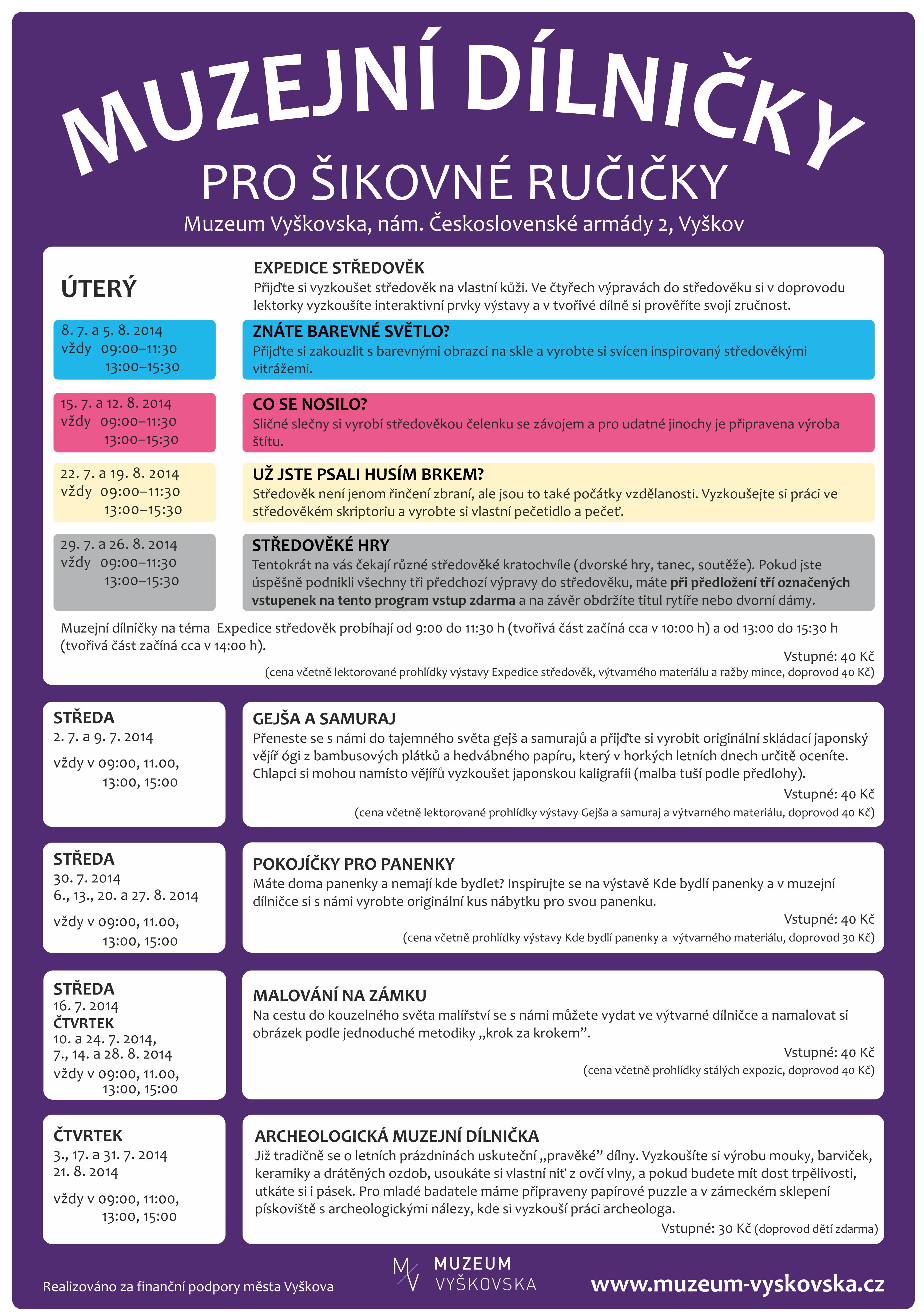 Na prázdninové měsíce jsme pro Vás připravili celou řadu muzejních dílniček zaměřených především na kreativní tvoření z různých materiálů. Dílničky jsou určeny pro malé i větší děti, zapojit se může i doprovod.