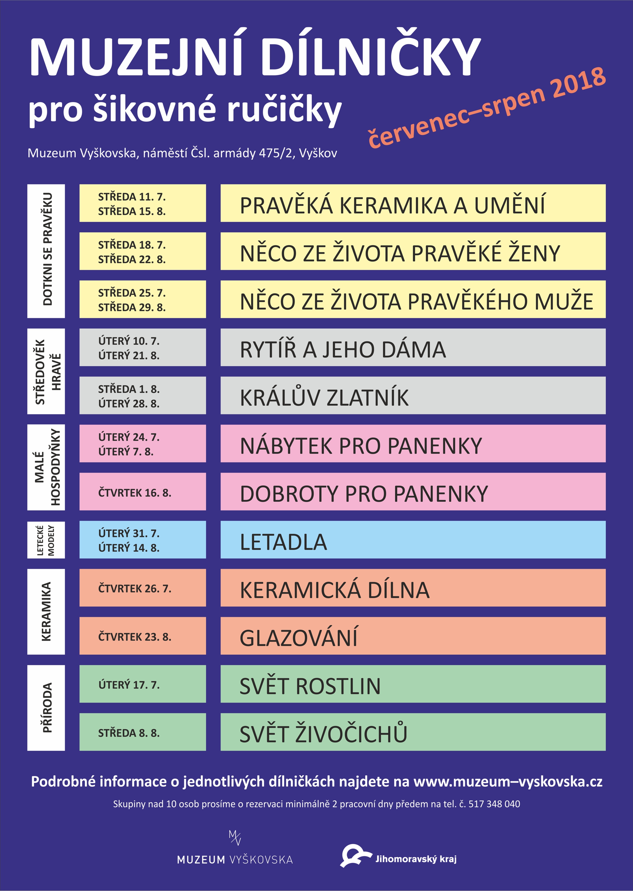 Rozpis jednotlivých dílniček najdete na plakátech a podrobné informace včetně vstupného v letáku  zde