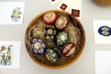 Přijďte se tedy i Vy seznámit s kraslicemi batikovanými, zdobenými slaměnou intarzií či ryze blatnickými, lidovou, např. horňáckou výšivkou, ručním tkaním i ručním tkaním na tkalcovském stavu, tradiční výrobou modrotisku, výrobou habánské fajánse a černé hrnčiny, zpracováním a pletením z orobince, zpracováním rohoviny a perleti či s výrobou figurek z kukuřičného šustí nebo s tradičním perníkovým i vizovickým pečivem. Dozvíte se také, jak se vyrábí došková krytina, zpracovává ovčí vlna i vše podstatné o bednářském řemesle.