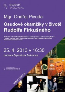 Přednáška o životě Rudolfa Firkušného v podání jednoho z autorů právě probíhající výstavy Rudolf Firkušný – největší český pianista Mgr. Ondřeje Pivody z oddělení dějin hudby Moravského zemského muzea.