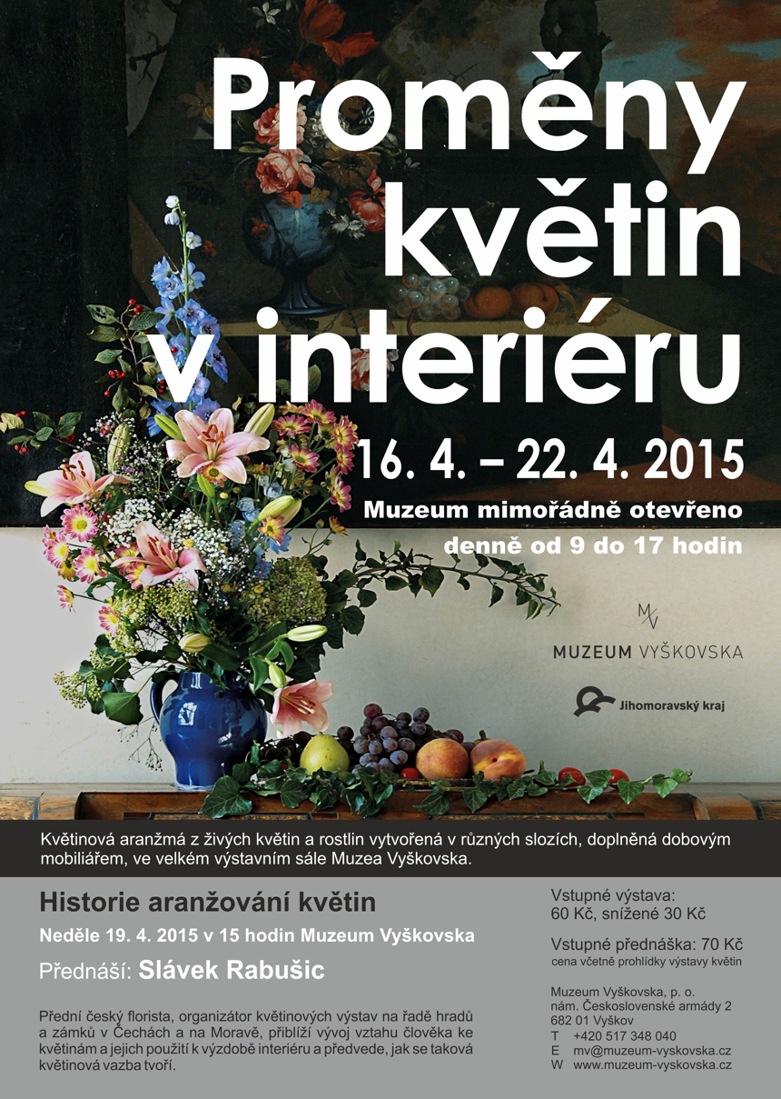 Květiny neodlučně patřily a stále patří do interiéru různých reprezentačních prostor ale i do domácností. V průběhu času se měnil nejen jejich styl ale také sortiment používaných květin, tvar nádob apod. Výstava představí, jak byly květiny používány v gotice, renesanci, baroku, rokoku, klasicismu, empíru, biedermeieru, romantismu a secesi, a to především prostřednictvím samotných květinových vazeb, ale i v doprovodných textech.
