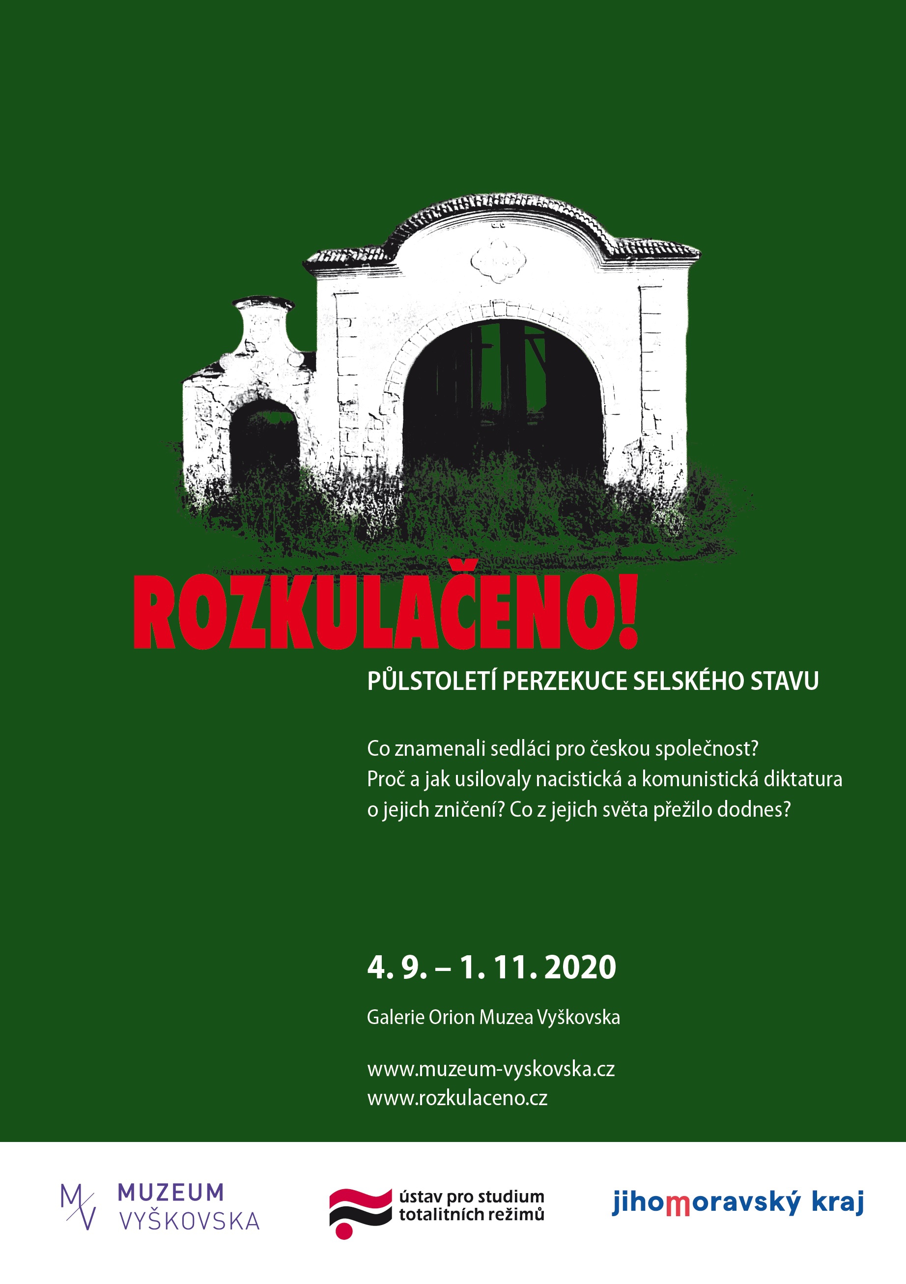 Výstava Rozkulačeno! připomíná změny v postavení sedláků a ve vývoji soukromého hospodaření v proměnách času, s důrazem na cílenou likvidaci sedláků zejména v 50. letech. Na konkrétních případech postižených hospodářů, „kulaků“, mapuje období jak násilné kolektivizace, tak následného zkolektivizovaného hospodářství. Nechybí ani přesah do současnosti spojený s příběhy selských rodin, kterým se podařilo navázat na tradici rodinného hospodaření i přesto, že náprava křivd po listopadu 1989 se příliš nepovedla.