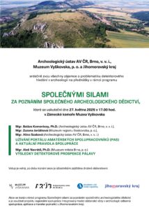 Archeologický ústav AV ČR, Brno, v. v. i., Muzeum Vyškovska, p. o. a Jihomoravský kraj srdečně zvou všechny zájemce o problematiku detektorového hledání v archeologii na přednášky v rámci programu Společnými silami za poznáním společného archeologického dědictví:
