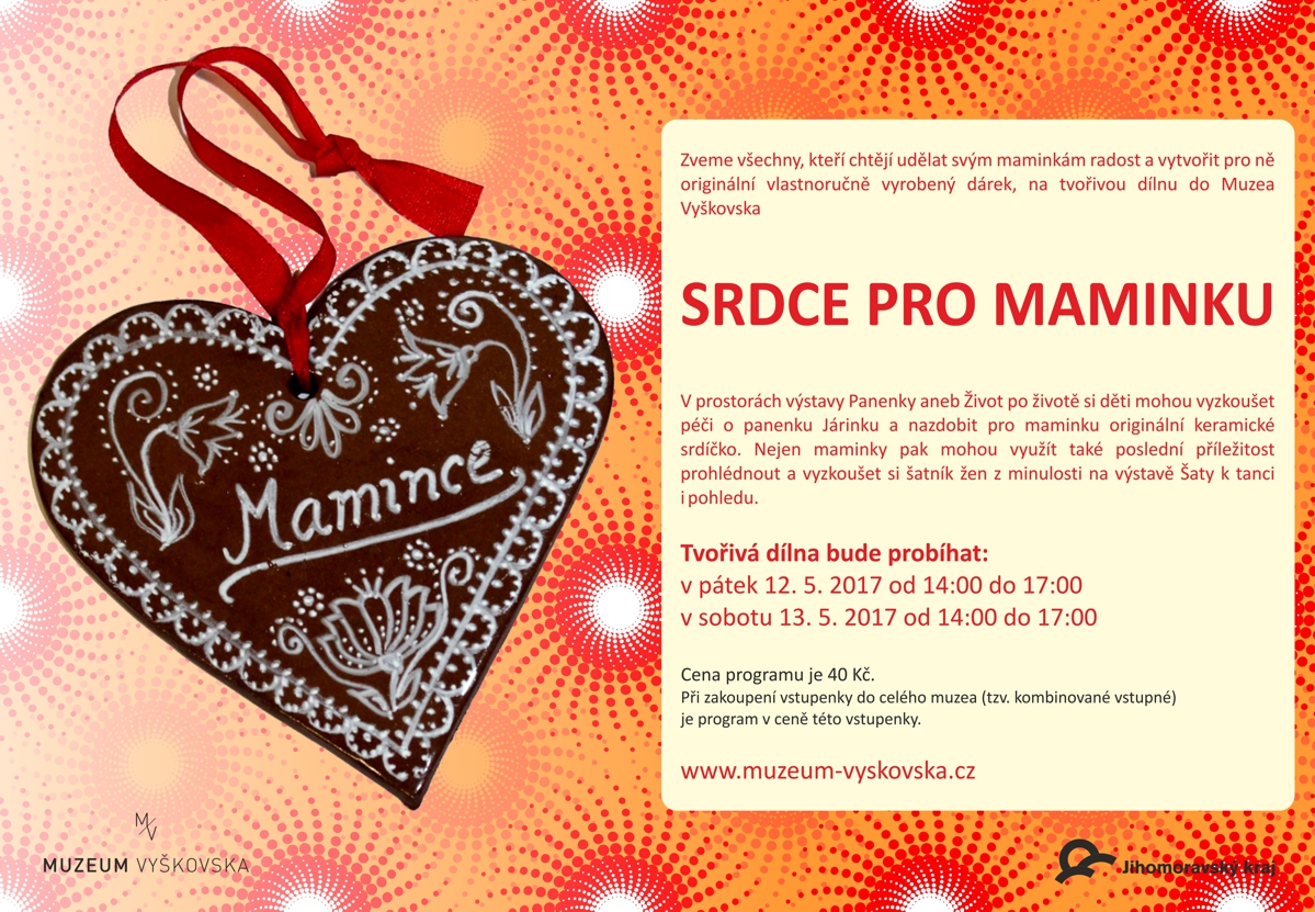 Zveme všechny, kteří chtějí udělat svým maminkám radost a vytvořit pro ně originální vlastnoručně vyrobený dárek, na tvořivou dílnu Srdce pro maminku.