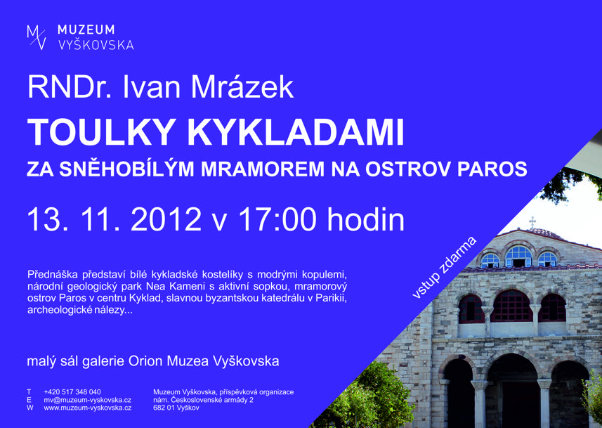 Zveme Vás na další zajímavou přednášku RNDr. Ivana Mrázka, tentokrát se s ním podíváme na Kykladské ostrovy.