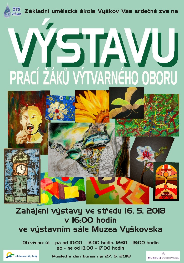 Základní umělecká škola Vyškov Vás srdečně zve na tradiční výstavu prací žáků výtvarného oboru, která potrvá do 27. 5. 2018.