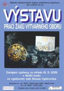 Základní umělecká škola Vás srdečně zve na tradiční výstavu prací žáků výtvarného oboru. Výstava bude v Muzeu Vyškovska k vidění do 26. 5. 2019.
