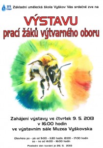 Základní umělecká škola Vyškov Vás srdečně zve na výstavu prací žáků výtvarného oboru, která bude zahájena vernisáží ve čtvrtek 9. května 2013 v 16:00 hodin. Výstavu si můžete prohlédnout do 26. 5. 2013.