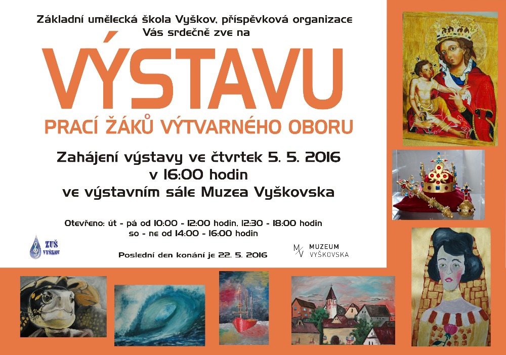 Základní umělecká škola Vyškov Vás srdečně zve na tradiční výstavu prací žáků výtvarného oboru, která potrvá do 21. 5. 2017.