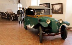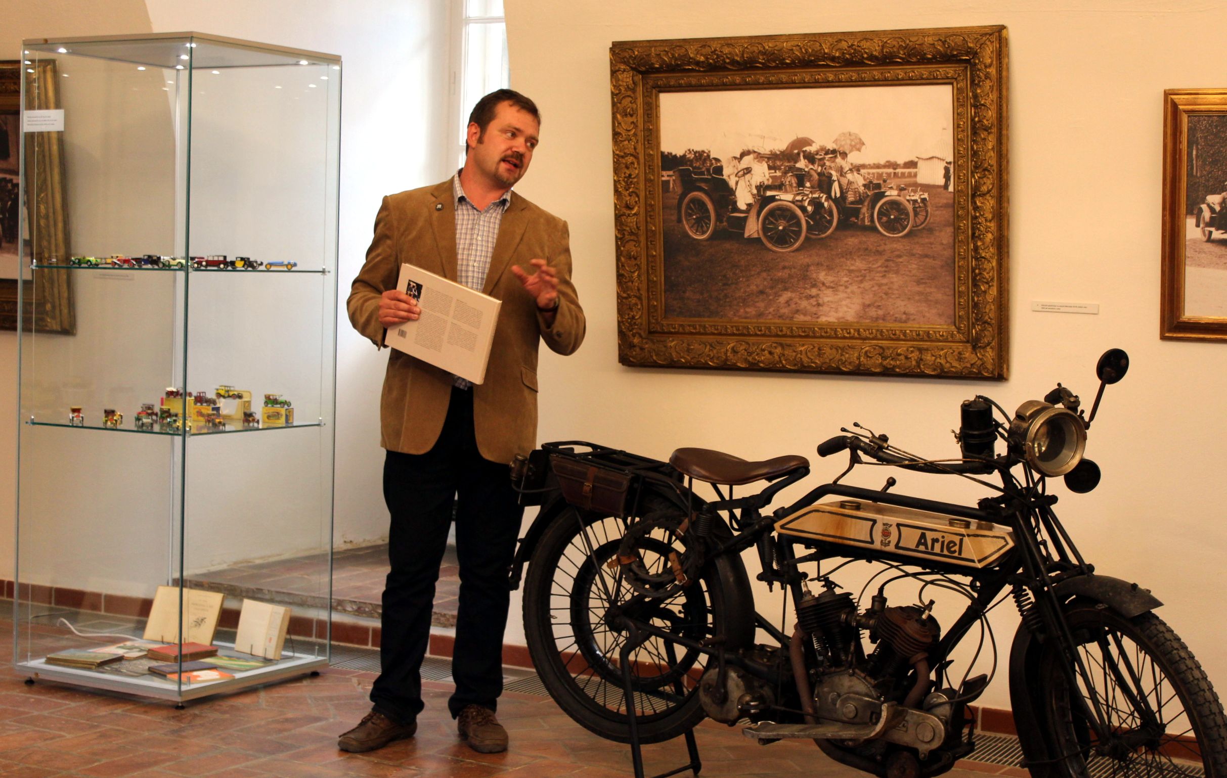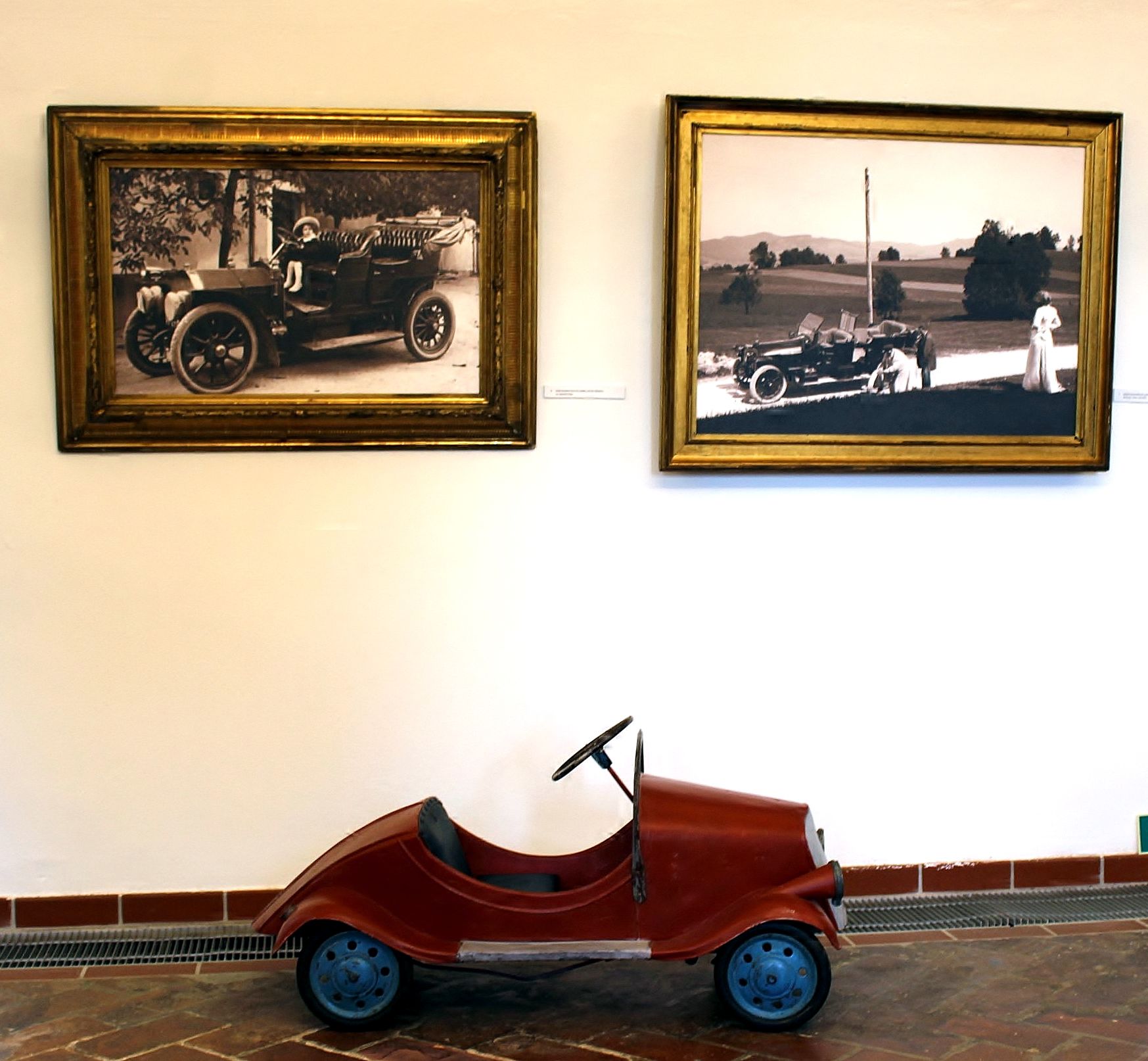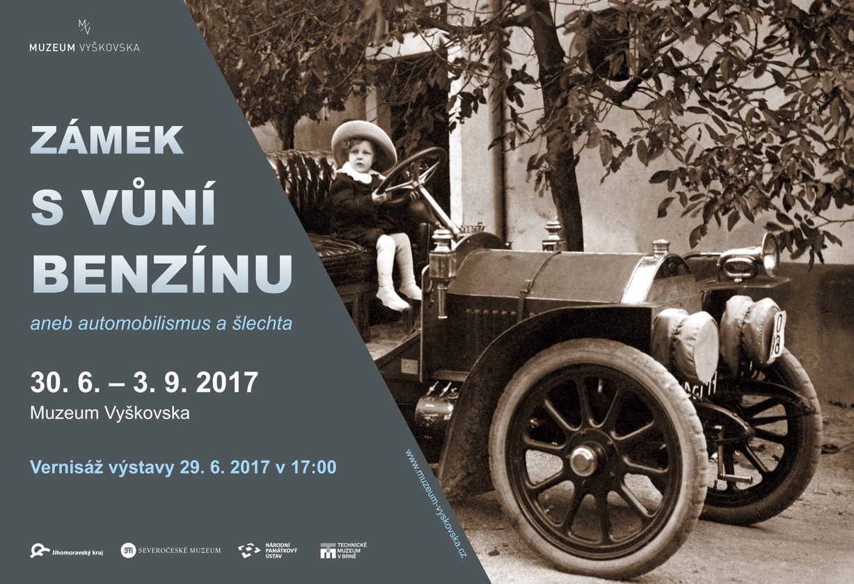 Výstava Zámek s vůní benzínu vznikla jako dokumentace automobilismu šlechty, která v této oblasti splnila roli průkopníka. Jak se jezdilo v době, kdy první vozy vlastnili aristokraté, kdy neexistovaly pořádné silnice, dopravní značení ani benzínové pumpy? O tom se můžete dozvědět na výstavě, kde uvidíte takřka 30 velkoplošných autentických fotografií, historické automapy, dobový autoservis, motoristickou módu pro muže, ženy i děti z 20.–30. let 20. století a další historické artefakty s motoristickou tematikou. Děti určitě zaujmou modely aut a hračky pro malé automobilisty. Nejmladší návštěvníci budou mít také možnost vyrobit si autíčko. Všichni se mohou vyfotografovat v maketě dobového automobilu a alespoň na chvíli se stát aristokratickým automobilistou.