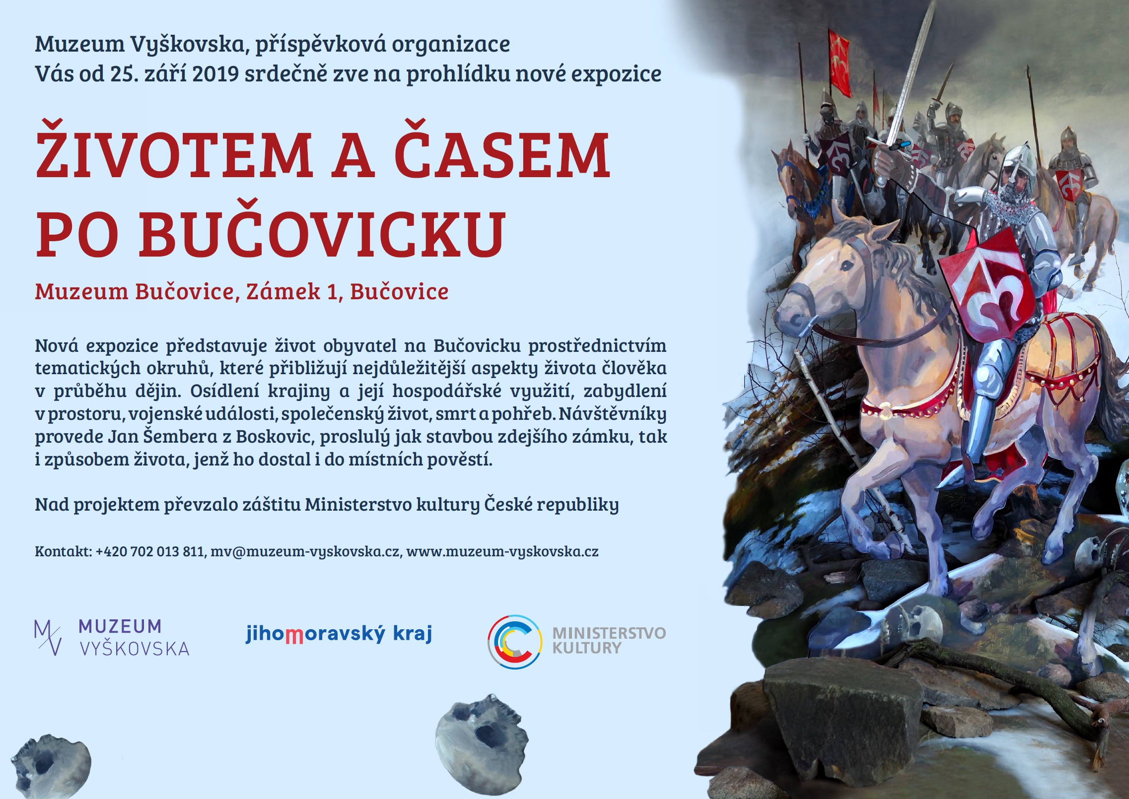 Srdečně Vás zveme na prohlídku stálé expozice Životem a časem po Bučovicku do Muzea Bučovice. Muzeum Bučovice sídlí v areálu renesančního zámku, v 3. NP západního zámeckého křídla. V roce 2019 byla v Muzeu otevřena nová expozice, která seznamuje návštěvníky nejen s historií a kulturou Bučovicka od pravěku po 20. století, ale také s faunou a florou regionu. Prezentujeme rovněž národopisné sbírky, především ukázky místní lidové a řemeslné tvorby.