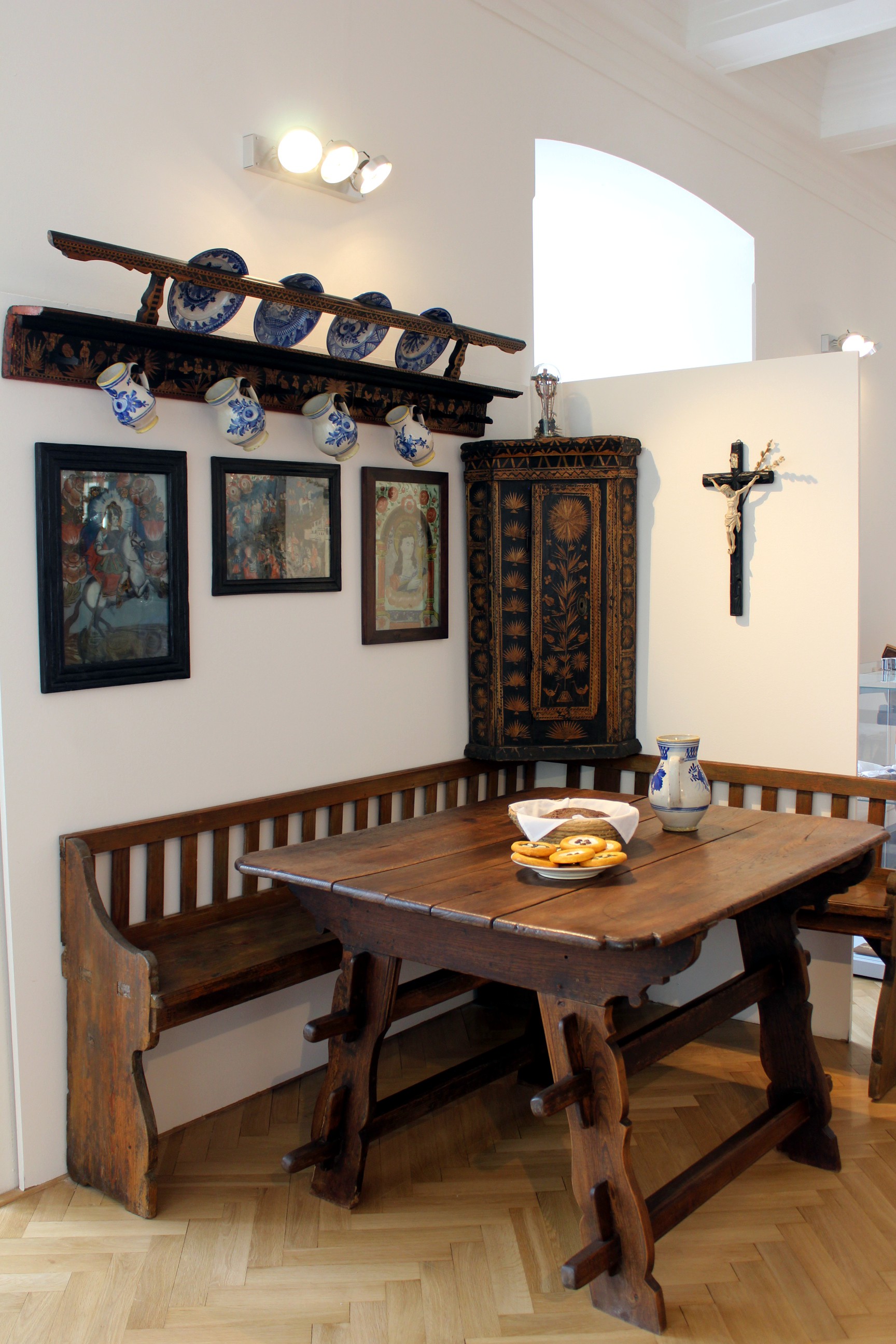 Národopisná expozice představuje život venkovských obyvatel Vyškovska v minulosti prostřednictvím klíčových momentů lidského života (narození, svatba) i výročního obyčejového cyklu. Pozornost je věnována také obživě, zemědělství a řemeslům. Součástí expozice je představení výrobků a pracovních nástrojů lidových řemeslníků a zemědělců, i prezentace lidových krojů a lidového umění. Nedílnou součástí prezentace lidové kultury Vyškovska je připomínky německého jazykového ostrůvku, který byl součástí vyškovského regionu do roku 1945. Stálý doplněk expozice tvoří interaktivními prvky, a tak je možné se na chvíli vcítit do role přadleny, trhovce či masopustní maškary.